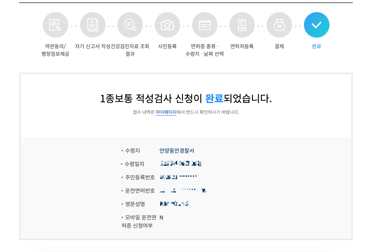 - 수령지: 운전면허시험장 or 경찰서 중 선택 가능